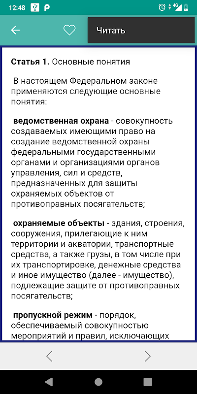L'applicazione è un comodo riferimento alla legge federale del 03.07.2016 N 226-ФЗ (modificata il 10/11/2018) "Sulle truppe della Guardia Nazionale della Federazione Russa"