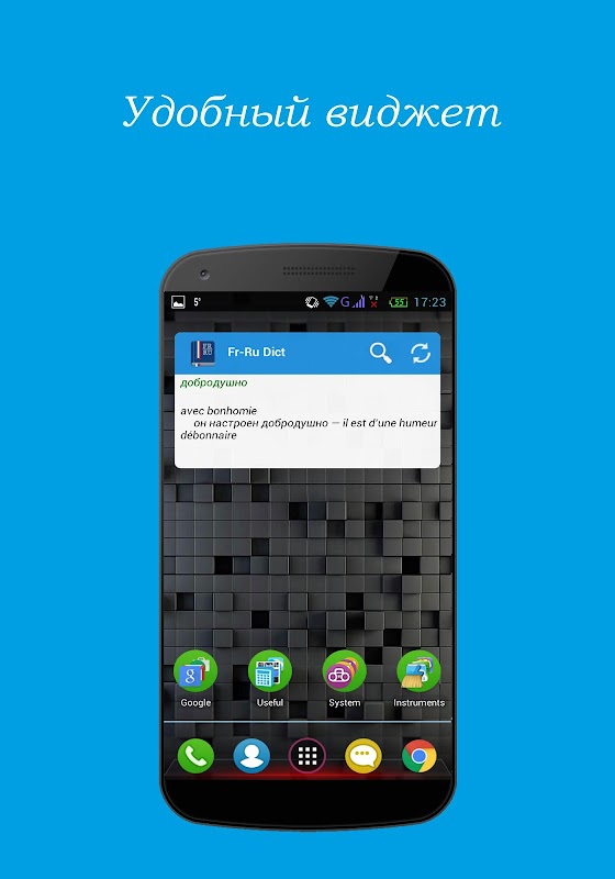 Stanco di portare con te dizionari grandi e pesanti? Ora tutto ciò di cui hai bisogno sarà nel tuo smartphone! I nuovi dizionari offline francese-russo e russo-francese saranno sempre con te, ovunque tu sia: studiare, viaggiare o studiare il francese a casa. Il dizionario contiene circa 128 mila parole comunemente usate e specializzate!