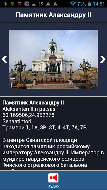 ● Navigation Technologies. Comodo curiosità XXI secolo, che consente di visualizzare la propria posizione su una mappa di Helsinki, e comprenderà storie guida audio quando si avvicina appena l'oggetto di ispezione.