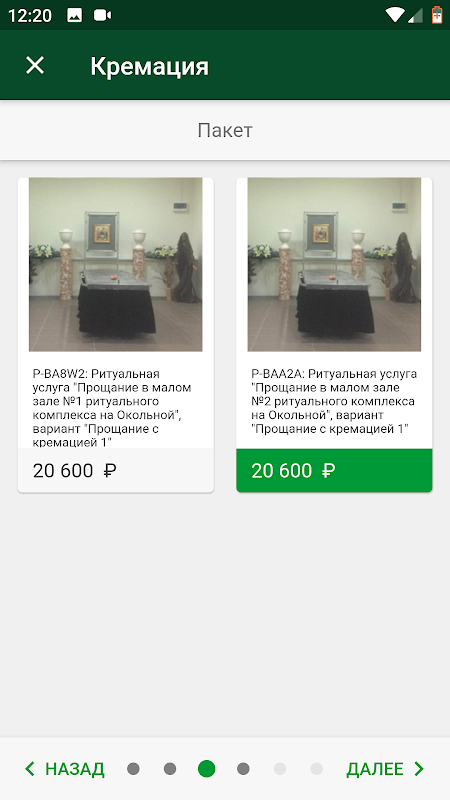 · Selezionare un cimitero e un pacchetto per lo smaltimento / podzahoroneniyu;