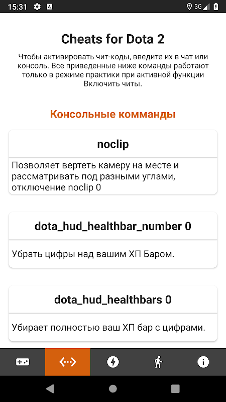 В доте есть свои внутриигровые читы, которые можно активировать играя только с ботами, или играя в лобби(здесь не важно: с ботами ты играешь, или с людьми, главное что бы читы были включены в настройках самого лобби).