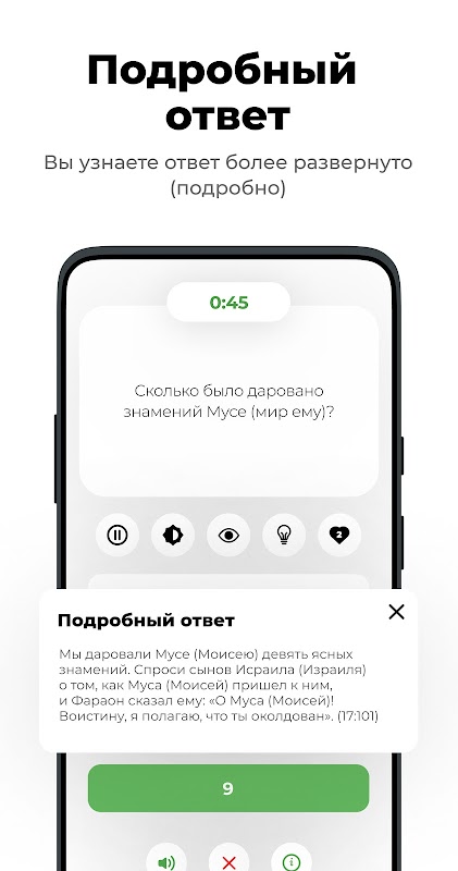 E la cosa più bella di questo gioco è la "Risposta dettagliata", con essa puoi capire la domanda in modo più dettagliato, in modo da non avere dubbi sulla correttezza della risposta.
