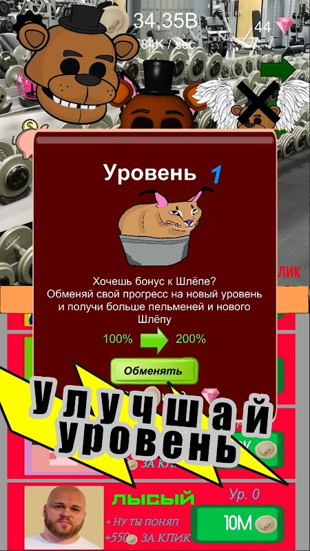 Мемы, мемы и ещё раз мемы? Эта игра именно для тебя! Ведь если ты разбираешься в мемах, то ты обязан знать про большого Шлёппу (Big Floppa), милого каракала, который стал недавно известен на просторах интернета. Начинай развивать своего Флоппу! Накопите множество денег для покупки нового питомца! Кликайте в своё удовольствие. Кормите и получайте большой буст к накоплению средств. Игра вас затянет своей привлекательностью, простотой и спокойным геймплеем. На ваш выбор есть множество Шлёп, которые дают определённый заработок. Лови Nyan Floppa, чтобы получить буст к твоему доходу! Играйте и наслаждайтесь! Твой Floppa ждёт тебя!
