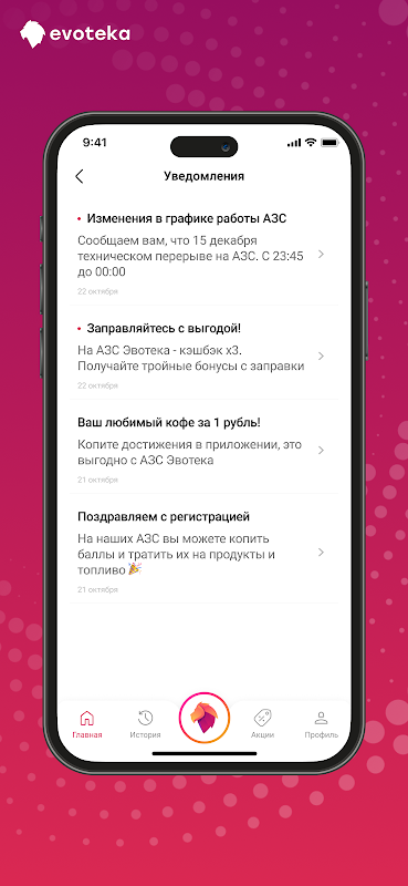 The EVOTEKA gas station mobile application allows you to easily and conveniently: