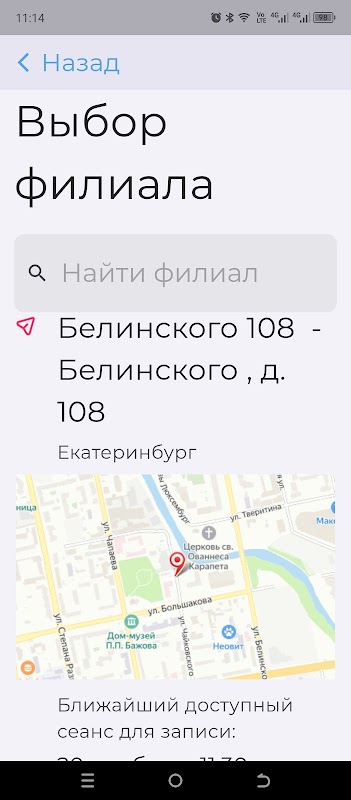 Applicazione della catena di saloni Egoist a Ekaterinburg