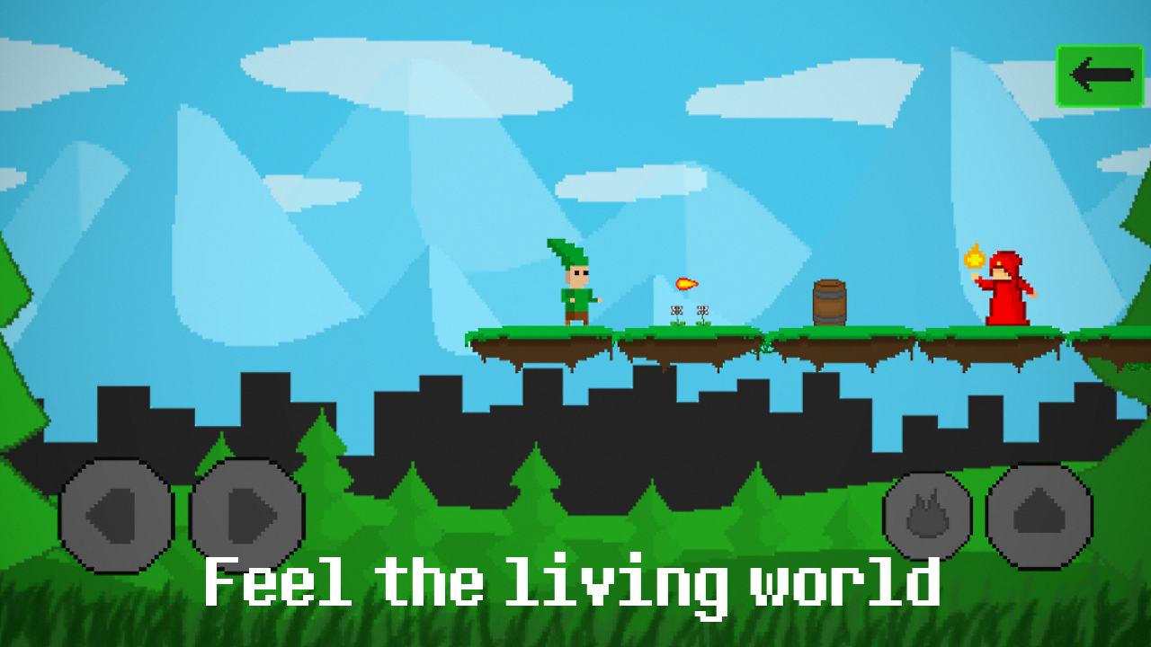 - Проработанный пиксельный 2д мир: на каждом уровне своего приложения, где как в марио в роли эльфа, вы должны дойти до конца!