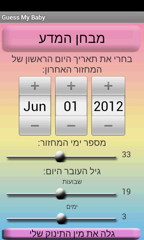 "מי אני- בן או בת?" הינו המחשבון המקיף ביותר לחיזוי מין העובר ומכיל בתוכו ארבעה מבחנים מארבעה תרבויות שונות.