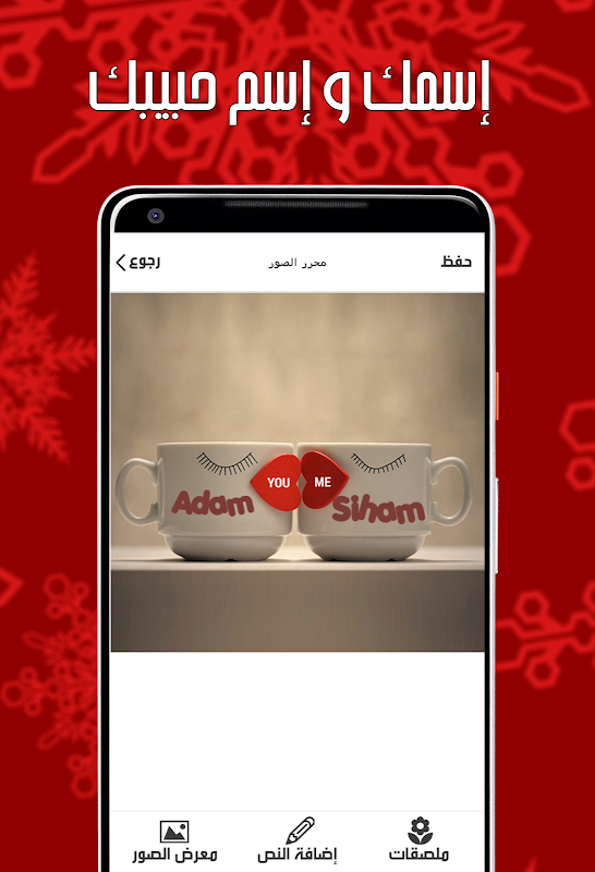 يمكنك أيضا كتابة الأسماء على الصور و التحميل على هاتفك كما يمكنك تكبير الصورة ووضعها كخلفية في جهازك الأندرويد.