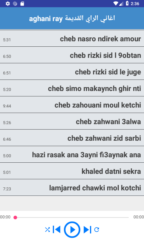 تطبيق موسيقي عربي رائع يتضمن اروع الاغاني الراي بدون انترنت! ويشمل الاغاني التالية:
