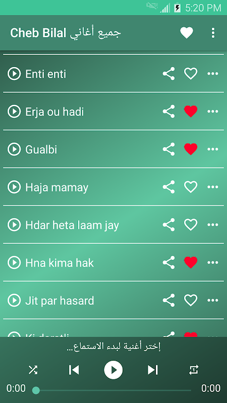 يحتوي التطبيق على ألأغاني التالية :