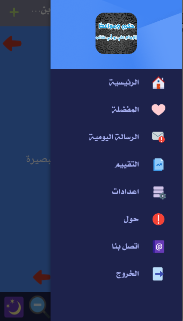 يحتوي تطبيق يحتوي تطبيق حكم ومواعظ علي بن أبي طالب على اكثر من 20 الف مقولة للامام علي، يمكنك التطبيق بخصائصه الفريدة وادواته سهلة والبسيطة والتي تستطيع من خلالها مشاركة الرسائل بين جميع اصدقائك على مواقع وتطبيقات شبكات التواصل الاجتماعي .
