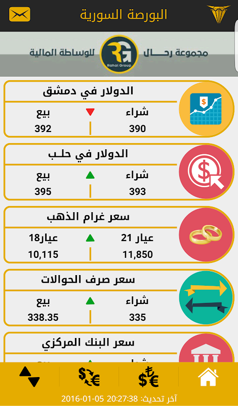 تطبيق البورصة السورية يتيح لك معرفة أسعار صرف العملات الرئيسية مقابل الليرة السورية و كذلك أسعار الذهب بشكل مباشر في السوق السوداء وبكل مناطق سوريا وعبر تحديث يومي مع محول للعملات وصفحة خاصة لمؤشر العملات الرئيسية والأونصة والنفط الخ ......