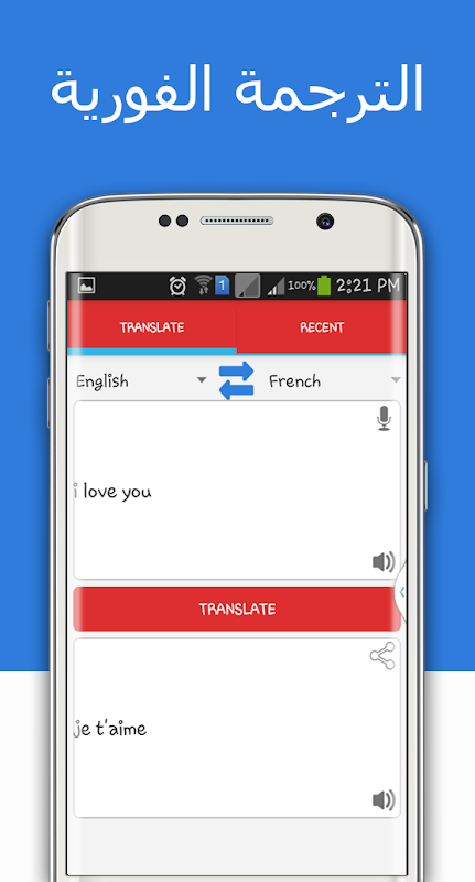 الترجمة الفورية الإحترافية لجميع اللغات - المترجم الناطق جديد 2019 إلى جميع اللغات منها ترجمة عربي فرنسي و ترجمة عربي انجليزي للكلمة و الجملة التي تريد ترجمتها ويتميز أيضا بنطق الكلمات المترجمة إلى جميع اللغات وحفظ الكلمات والرجوع إليها في أي وقت وأيضا الترجمة الفورية 2019