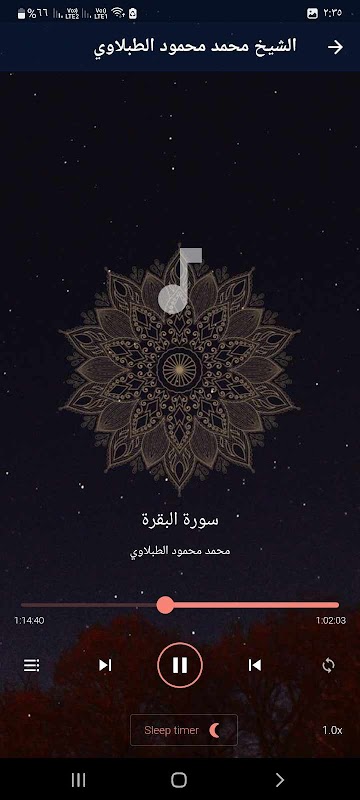 L'applicazione ti consente di impostare un timer di tua scelta per l'interruzione, in cui puoi scegliere un periodo di tempo specifico dopo il quale il lettore audio interromperà la riproduzione e il suono si interromperà automaticamente senza la necessità del tuo intervento. Questo aiuta a dormire e a giocare i suoni del Sacro Corano in modo che tu possa dormire in pace e tranquillità.