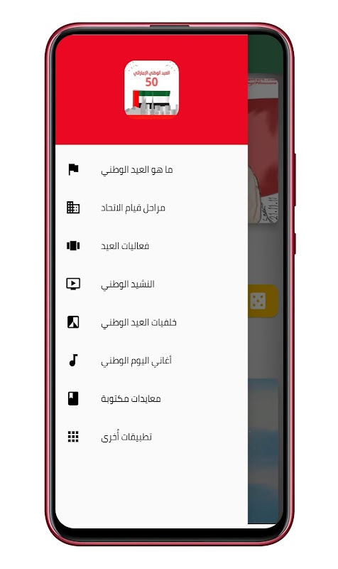 Contenuto dell'applicazione della Giornata nazionale 50 degli Emirati Arabi Uniti: