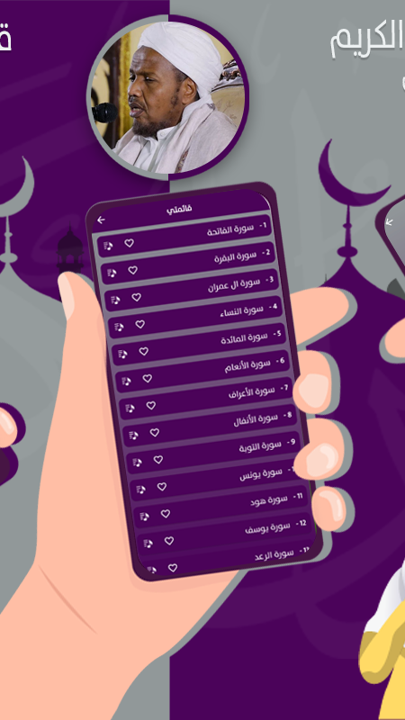 ✔ يمكنك التطبيق من تحميل أي سورة من السور حتى تستطيع الاستماع إليها في حال عدم الاتصال بالإنترنت من خلال خيار (تحميل).