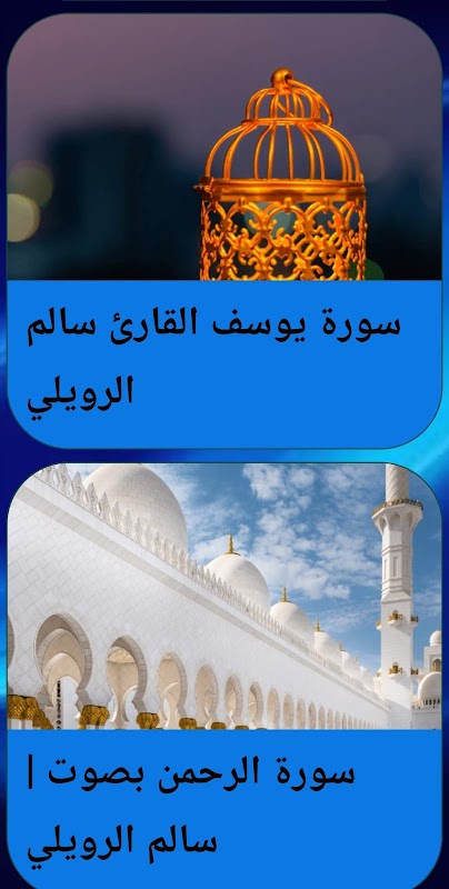 Dopo aver scaricato l'applicazione, puoi ascoltare le sure del Nobile Corano con la voce dello sceicco Salem Al-Ruwaili e leggere le sure allo stesso tempo gratuitamente, sempre e ovunque con facilità.