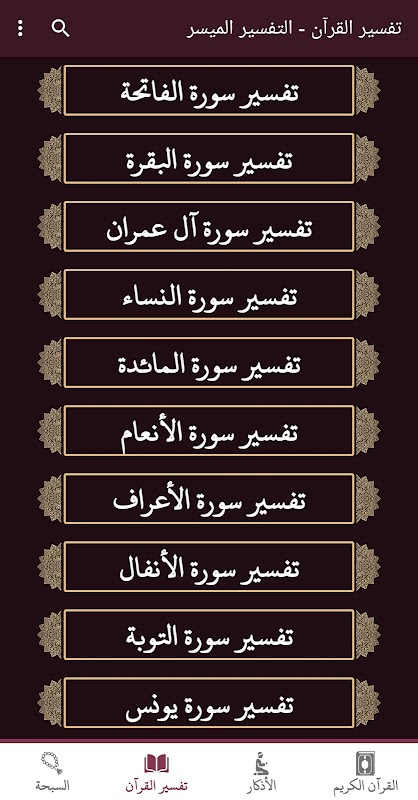 ميزة تكبير الخط لتسهيل قراءة سور القرآن الكريم.
