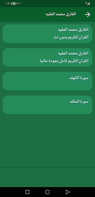 Dopo aver scaricato l'applicazione, puoi ascoltare le sure del Sacro Corano con la voce dello sceicco Muhammad Al-Faqih gratuitamente, sempre e ovunque, con totale facilità.