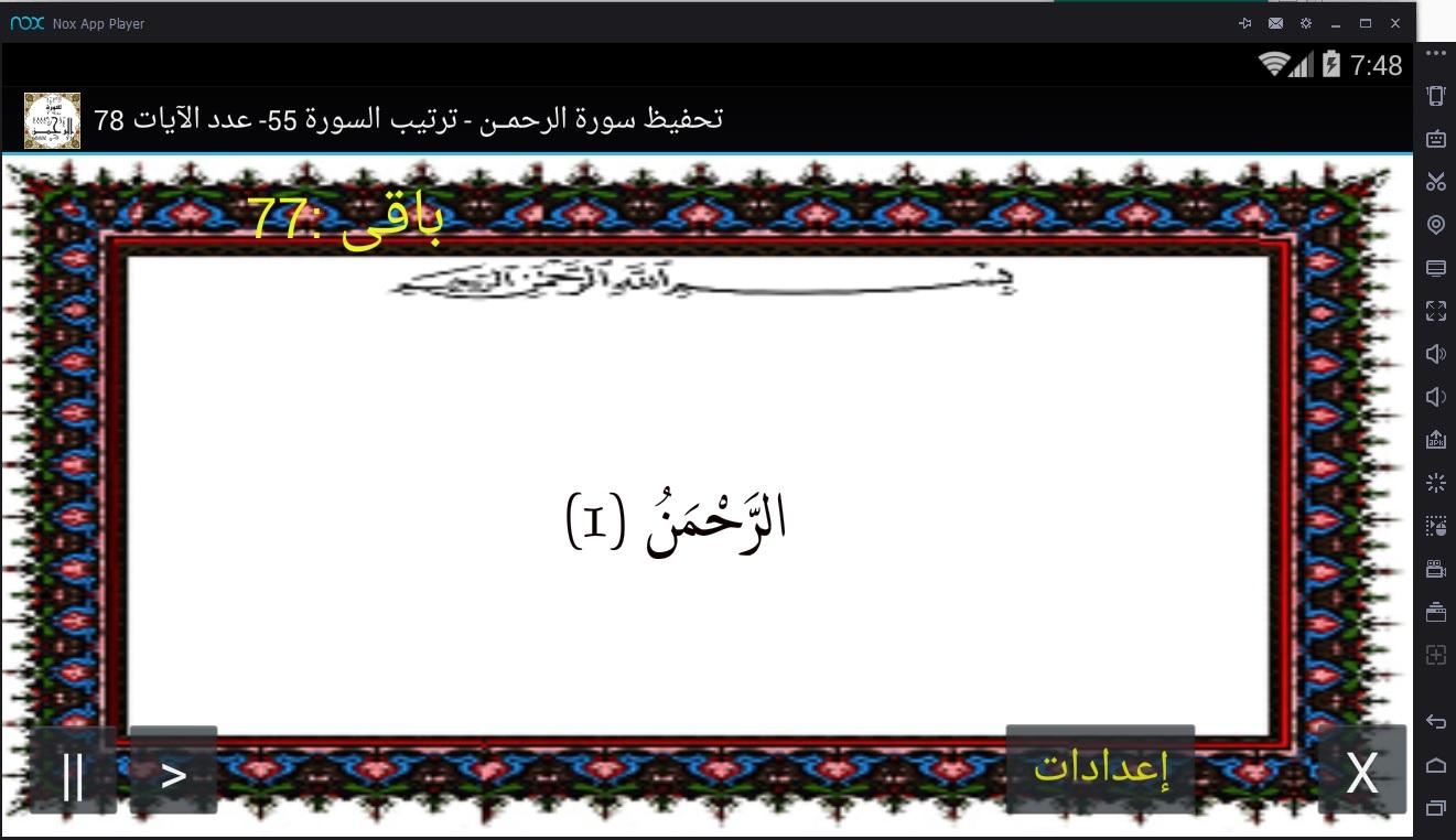 لتكرار التلاوة أضغط (<<) مره أخرى وللتوقف أضغط (||).