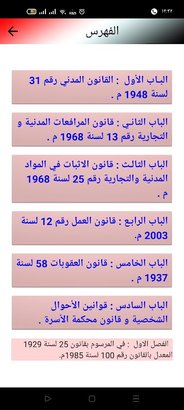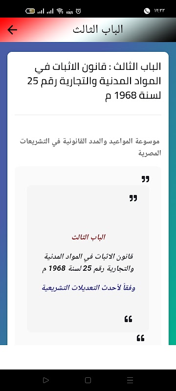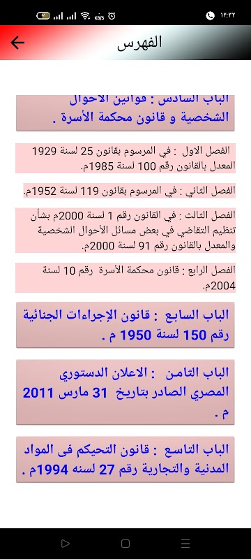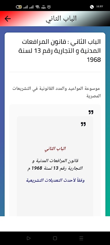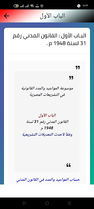 L'applicazione è un'enciclopedia di date e periodi legali nella legislazione egiziana