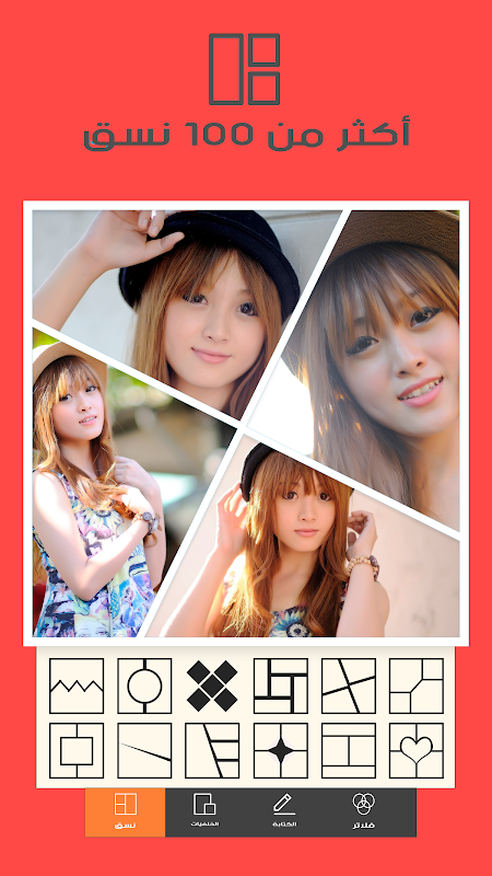 كاول خطوة لك مع برنامج عمل مؤثرات تركيب صور بعد تثبيثه قم باختيار الشكل المناسب لك من بين اشكال تركيب الصور اذ يمكن لك تركيب صورتين مع بعض بشكل صور بجانب صور او تركيب اكثر من صورتين باشكال مختلفة و جد رائعة .