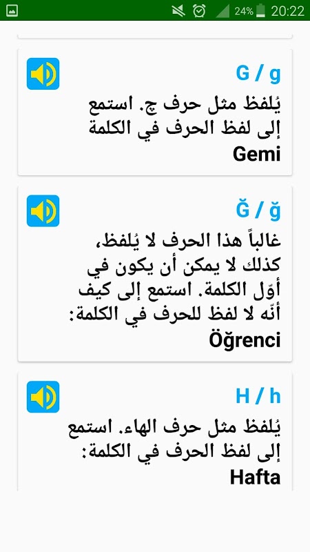 Questa applicazione contiene le parole più importanti della lingua turca tradotte in arabo insieme alla loro pronuncia