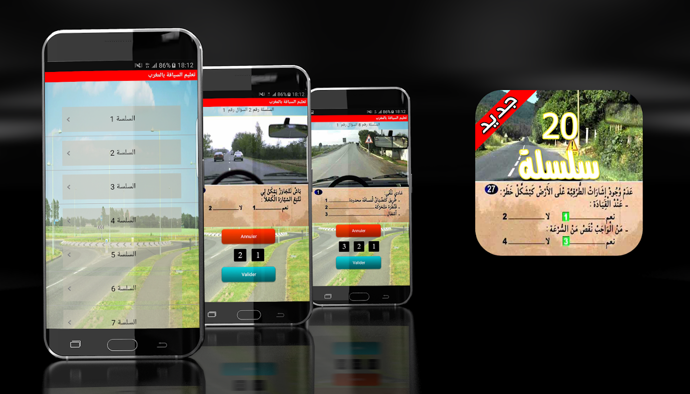 يختوي على 20 سلسلة كاملة مع الإجابات الصحيحة وهو بمثابة مدرسة تعليم السياقة بالمغرب لاجتياز رخصة السياقة