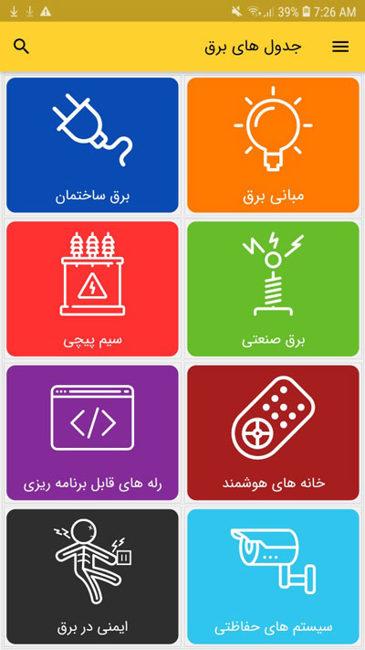 در این برنامه سعی شده است تا تمام جدول های کاربردی و مورد نیاز رشته برق آورده شود.