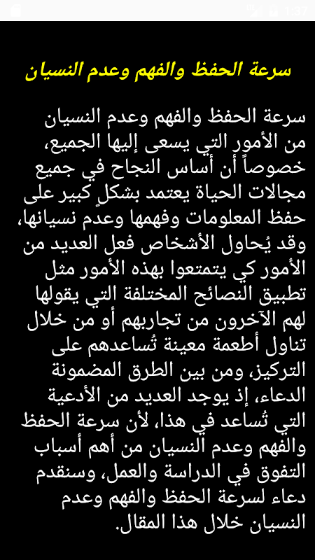 • 1 Schermata دعاء لسرعة الحفظ والفهم وعدم النسيان