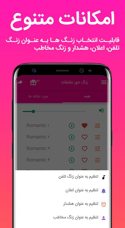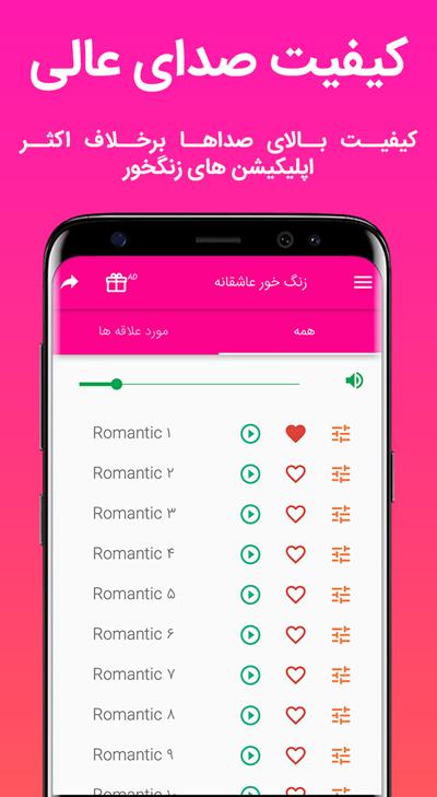 بیش از 50 زنگ خور جدید رمانتیک و عاشقانه برای گوشی اندرویدی شما .زیبا و لوکس با کیفیت صدای عالی. اگر از گشتن دنبال یه آهنگ زنگ خاص، زیبا و سنگین برای گوشیتون خسته شدید پس این اپلیکیشن زنگ خور عاشقانه رو امتحان کنید