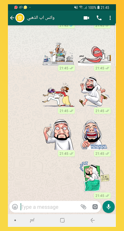 يحتوي تطبيق ستكر واتس الذهبي على مجموعة كبيرة من ملصقات المختلفة: