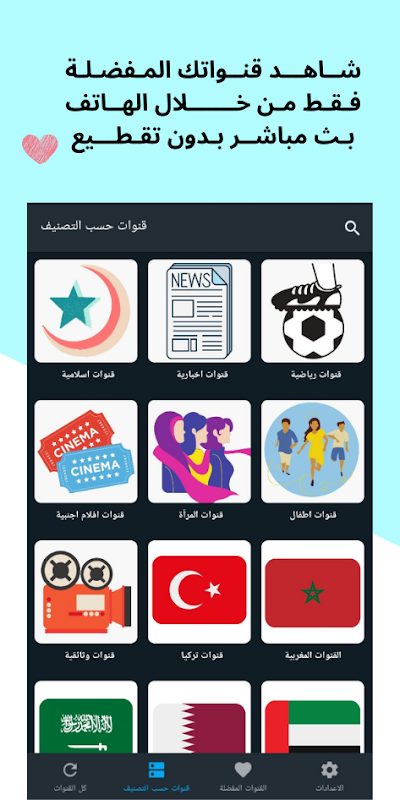 Un'applicazione TV per guardare i migliori canali arabi e internazionali senza tagliare e ovunque tu sia nel modo più semplice, l'applicazione TV di tutti i canali per guardare i tuoi programmi preferiti senza tagliare durante il giorno. TV dal design semplice ed elegante che facilita il processo di visione e fruizione della trasmissione in diretta.