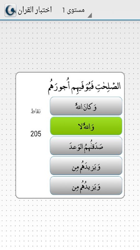 Quran Quiz is an open-source android client to the Quran Quiz Network. Quran Quiz is an Arabic multiple choice questionnaire to test your Quran Learnings. It's considered a game as well. Quran Quiz creates an on-phone profile. This profile is needed to parameterize the questionnaire.