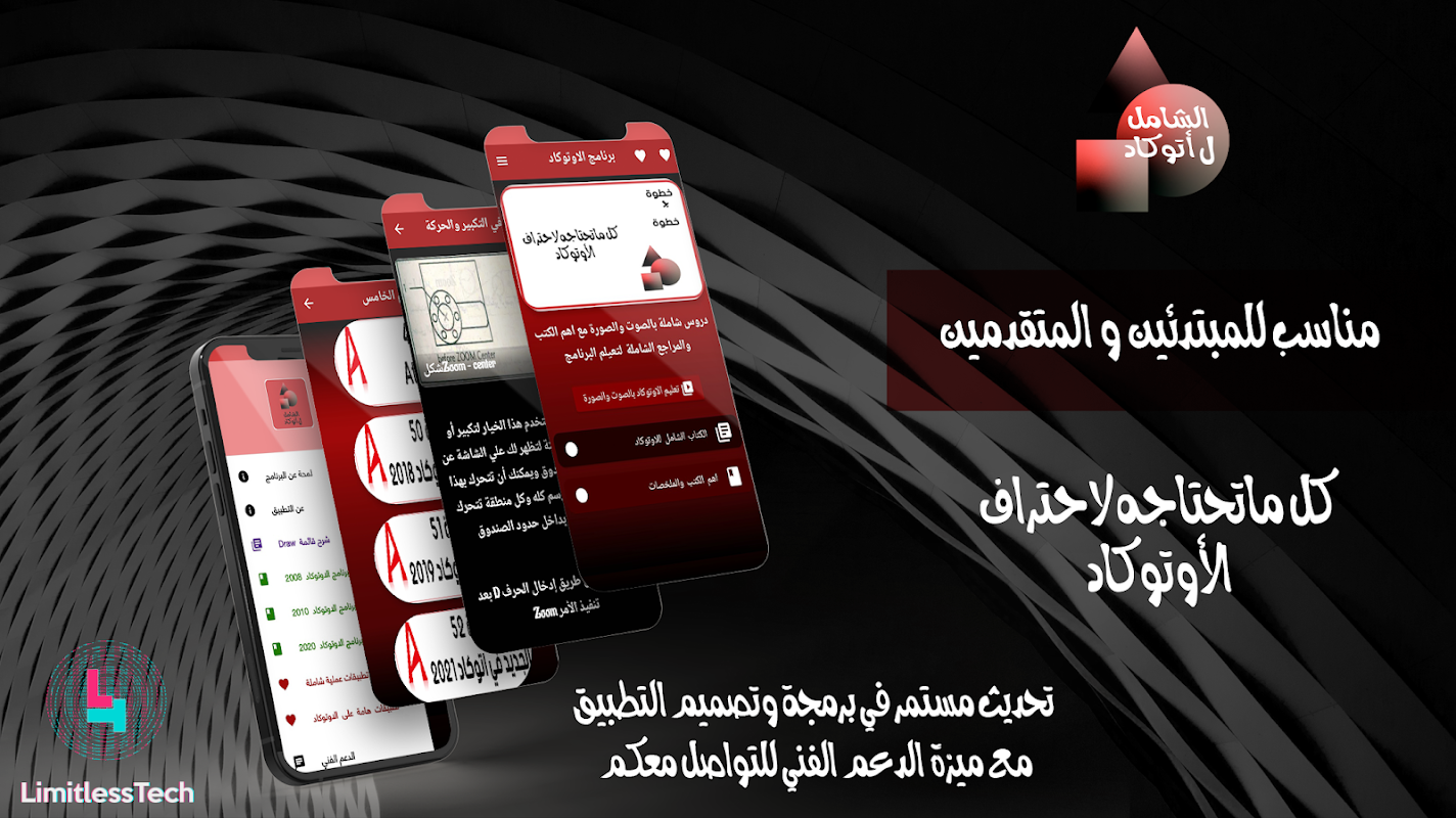 L'applicazione AutoCAD Explanation contiene tutto il necessario per imparare passo dopo passo il programma AutoCAD da zero per raggiungere la piena professionalità attraverso una serie di chiari video didattici in arabo, insieme a un numero ampio e rinnovato di libri, riepiloghi e applicazioni pratiche per facilitare l'apprendimento il programma AutoCAD