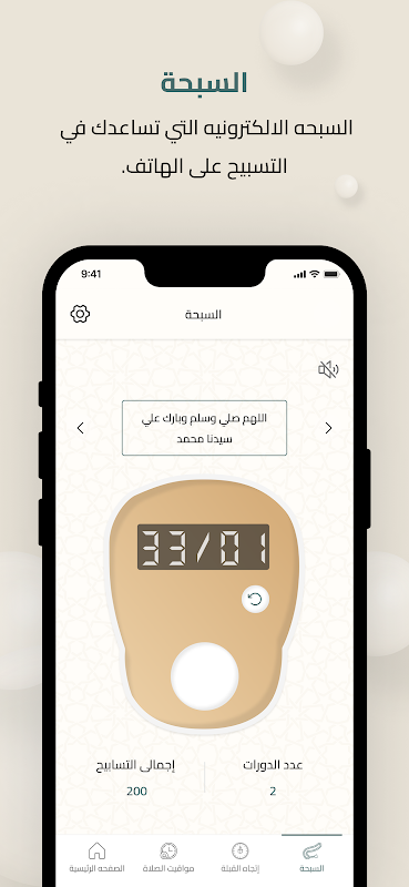 Il rosario elettronico che ti aiuta a dire tasbeeh sul tuo telefono con molte delle funzionalità fornite dal rosario intelligente, come il contatore digitale dei tasbeeh, la funzione di azzeramento e una calcolatrice per il numero totale di tasbeeh al giorno.