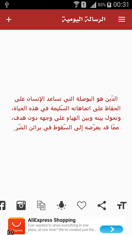 * اعدادات التطبيق والتي من خلالها تستطيع تغير نوع الخط والالوان والاشعارات .