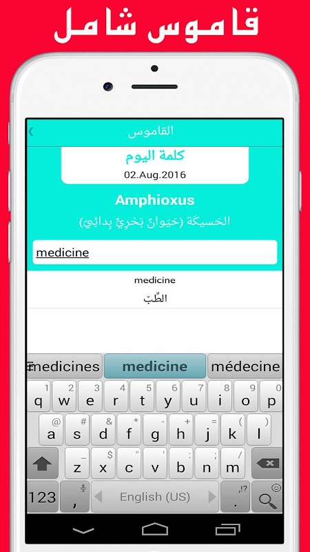 Dictionary translate Medicine English to arabic