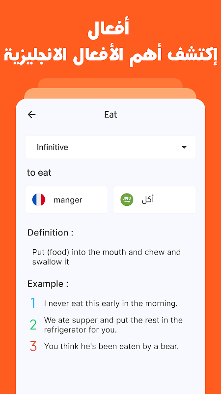 Un dizionario arabo-inglese o un dizionario inglese-arabo è un'applicazione che traduce parole dall'arabo all'inglese o viceversa senza Internet.