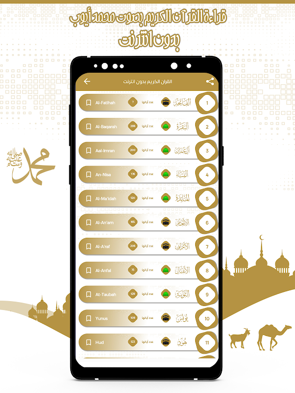 Dopo aver scaricato l'applicazione, puoi ascoltare le sure del Nobile Corano con la voce dello sceicco Muhammad Ayoub gratuitamente, sempre e ovunque, con facilità.