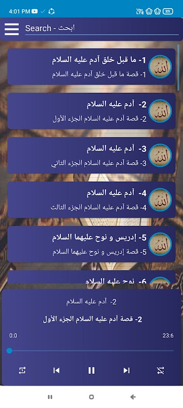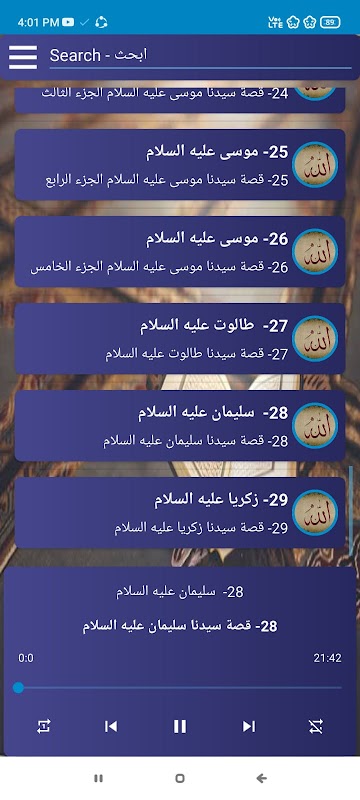 Un'applicazione che contiene le storie dei profeti con la voce dello sceicco Tariq Al-Suwaidan in una piccola dimensione