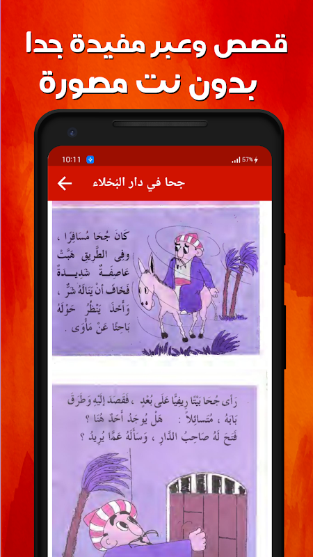 Questa applicazione include un'enciclopedia di storie varie, umoristiche e divertenti, che includono significati speciali e ambiguità, divise in due categorie, una libreria di storie e racconti scritti e storie di Juha, voce e immagine senza rete (la tua ricompensa è la voce del dirhams, Juha e l'ospite malato, Juha e le parole della gente, dice Juha che ha scavato una buca per suo fratello e vi è caduto). , Juha che fa un favore, Juha il venditore di seta, Juha e il vicino avaro, brodo di coniglio, Juha fa un favore, i miei vestiti sono più importanti di te, che dona molto e non lesina poco, Dio ti dà e Dio non ti comprerà, Juha e il re, Juha e il re, Juha ha cinque piastre ...) e racconti scritti completi Comprende tre raccolte: Racconti del filosofo, Racconti di Juha e l'asino e Racconti di Juha il giudice