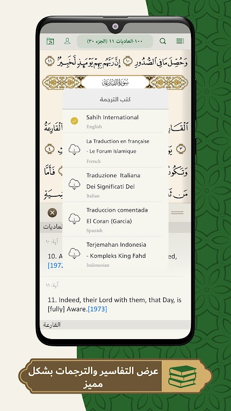 • Manage recitations, audio translations & tafseers in the Downloads section