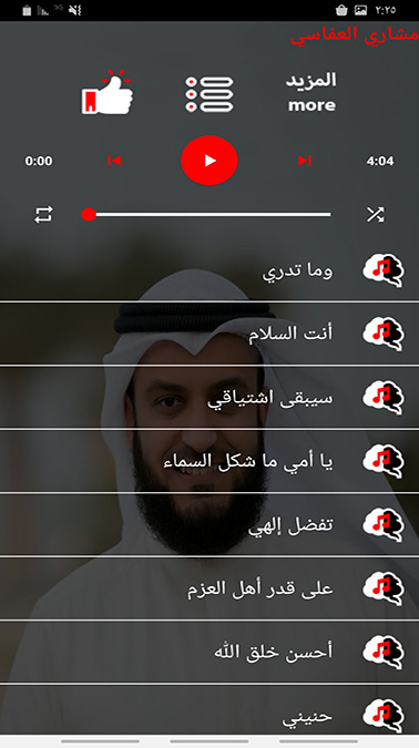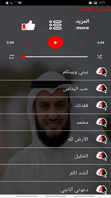 تطبيق أروع الأناشيد للقارئ مشاري بن راشد العفاسي الذي يحتوي على باقة من الأناشيد المختارة بعناية لتناسب جميع الاذواق.