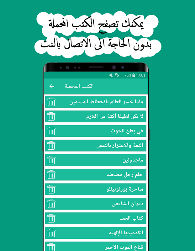 - يمكنك تحميل كتبك المفضلة وحفظها علي الذاكره لقرائتها بدون انترنت