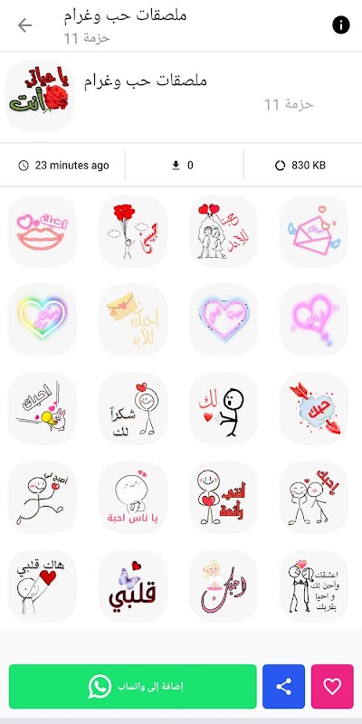 Usa nuovi adesivi romantici per whatsapp e aggiungi un nuovo pacchetto di adesivi da: