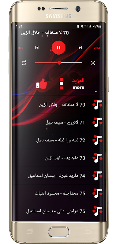 L'applicazione contiene più di 100 canzoni irachene e arabe e include anche canzoni per oltre 40 artisti