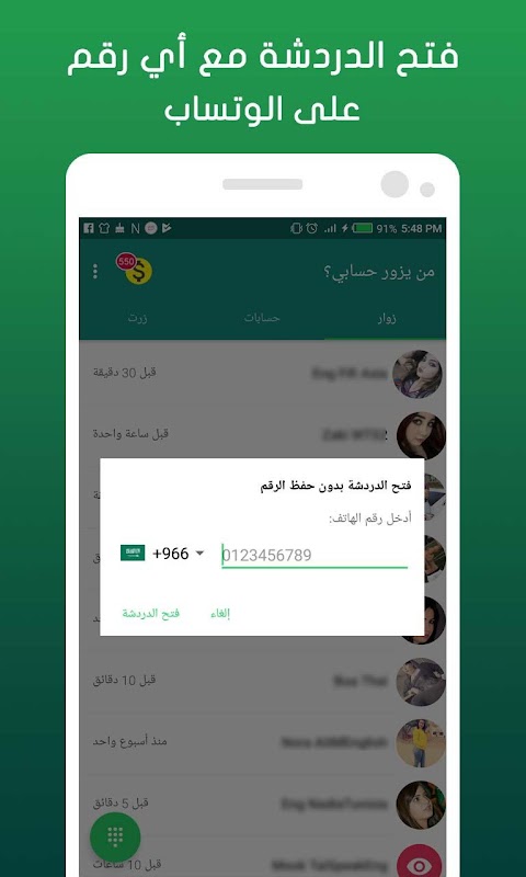 ... الدردشة مع أي رقم هاتف دون حفظه والتعرف على بنات و شباب العرب