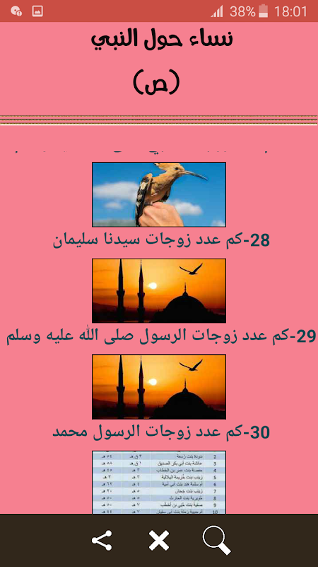 Storie emozionanti e meravigliose biografie sulle compagne dell'era della profezia senza Internet Un'applicazione unica in termini di visualizzazione delle informazioni. Puoi trovare i nomi delle mogli del Profeta in ordine con la data e l'anno Hijri, sotto forma di cronologia. Moglie e coniugi dell'amato Messaggero, numero di figli, data di nascita e morte, lignaggio ed età in cui ha sposato il Messaggero di Dio.