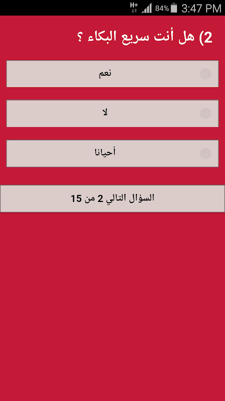 يتكون هذا التطبيق من مجموعة من الاسئلة ذات الاجابات المتعددة والتي تقوم على تحليل شخصيتك.